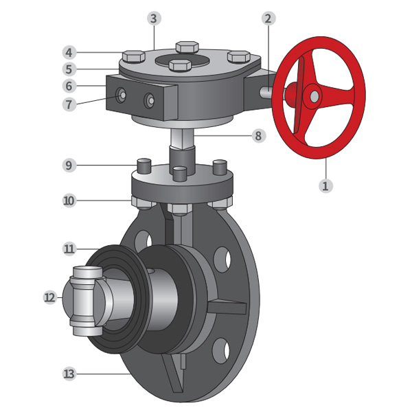 Worm-gear Type Butterfly Valve Assembly Detail Drawing