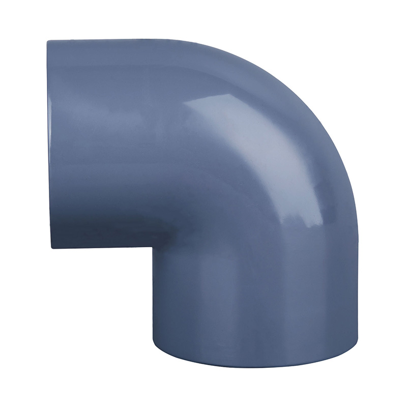Visokokvalitetni svijetlo sivi PVC-C 90° koljenasti spojevi plastičnih cijevi DN15-DN600 1,0-1,6 MPa radnog tlaka za kemijsku industriju i industriju vode