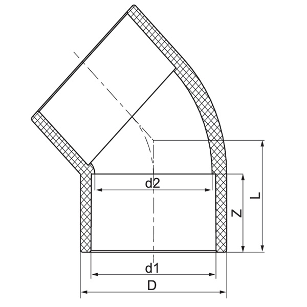 PVC-C 45° koljeno DN15-600 1/2"-24" ANSI standard