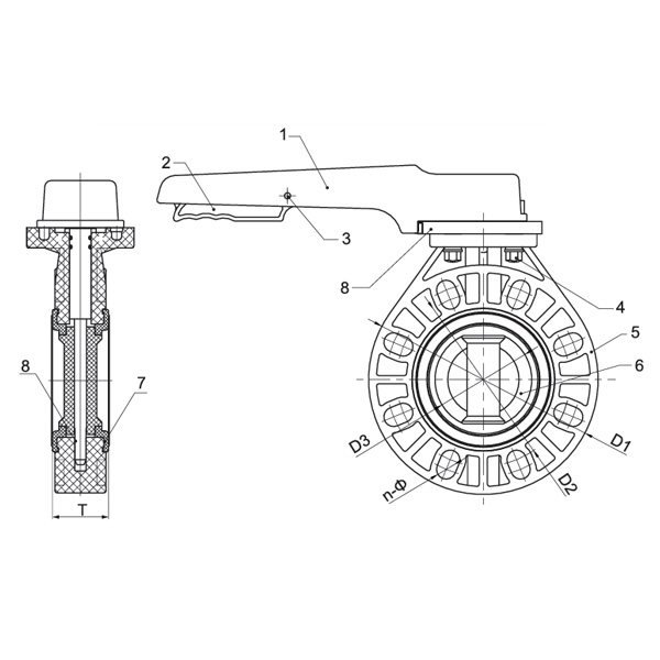 PPH D71X-10S leptir ventil s ručkom DN40-200 1-1/2"-8" ANSI standard