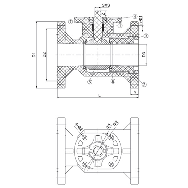 Specifikacija D1 (mm) D2 (mm) D3 (mm) L (mm) h (mm) n-Φ1 (mm) Φ1 (mm) Φ2 (mm) SXS (mm) 4-Φ2 (mm) Z (mm)