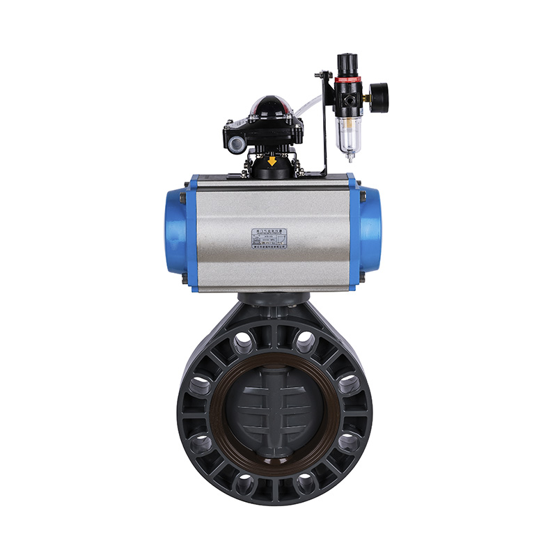 PVC-U pneumatski pokretani leptir ventil, središnja brtva meka brtva DN32-1000, industrijski i stambeni plastični leptir ventil ANSI standard