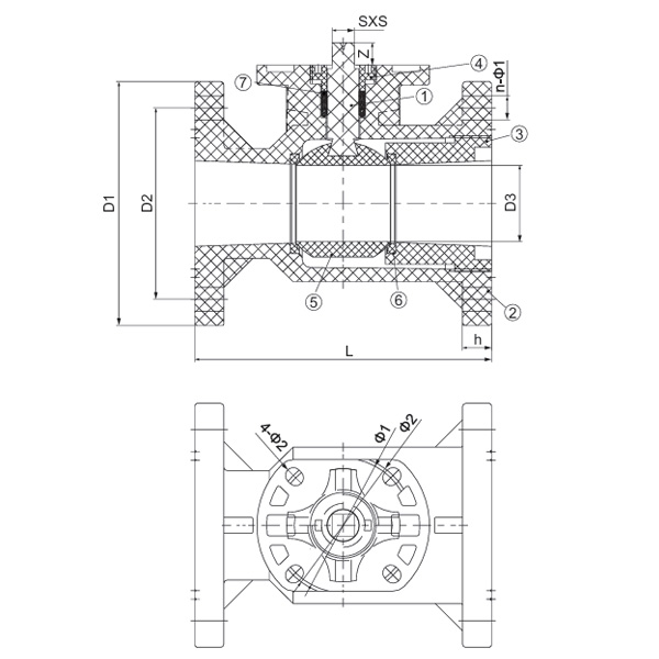 Specifikacija D1 (mm) D2 (mm) D3 (mm) L (mm) h (mm) n-Φ1 (mm) Φ1 (mm) Φ2 (mm) SXS (mm) 4-Φ2 (mm) Z (mm)