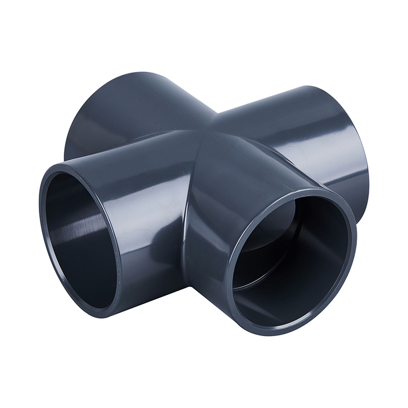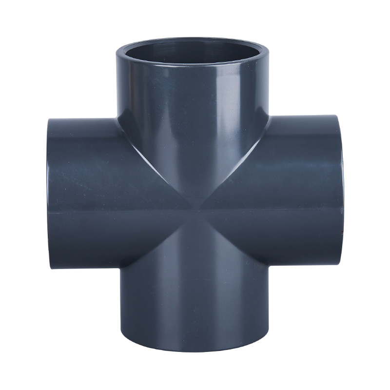 Tamno sivi PVC-U bešavni fitinzi s jednakim stezaljkama, križni, T- i križni priključci po konkurentnim cijenama, DN15-DN600 plastični priključci za sanitarne i vodoopskrbne cijevi