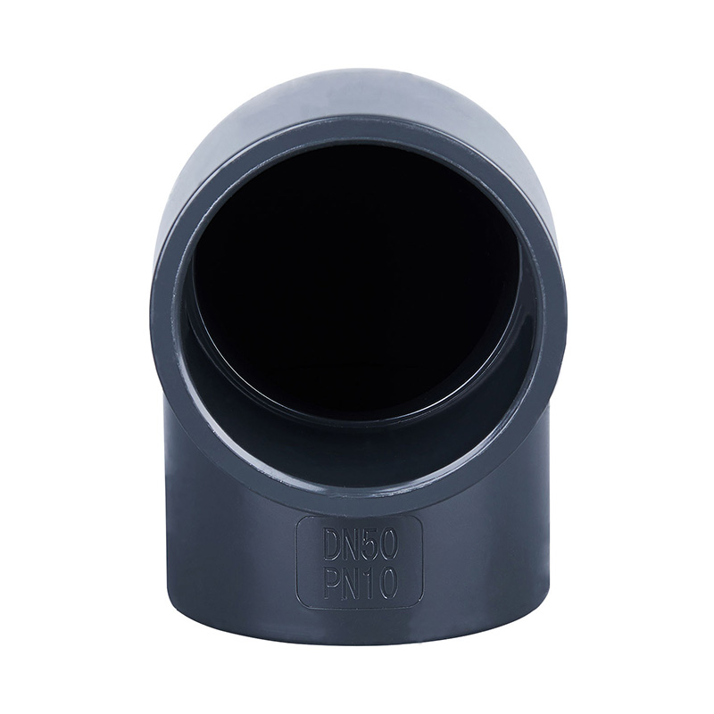 Visokokvalitetni tamno sivi PVC-U 90° koljeni DN15-DN600 1,0-1,6 MP plastični cijevni spojevi za radni tlak za kemijsku industriju i industriju vode.
